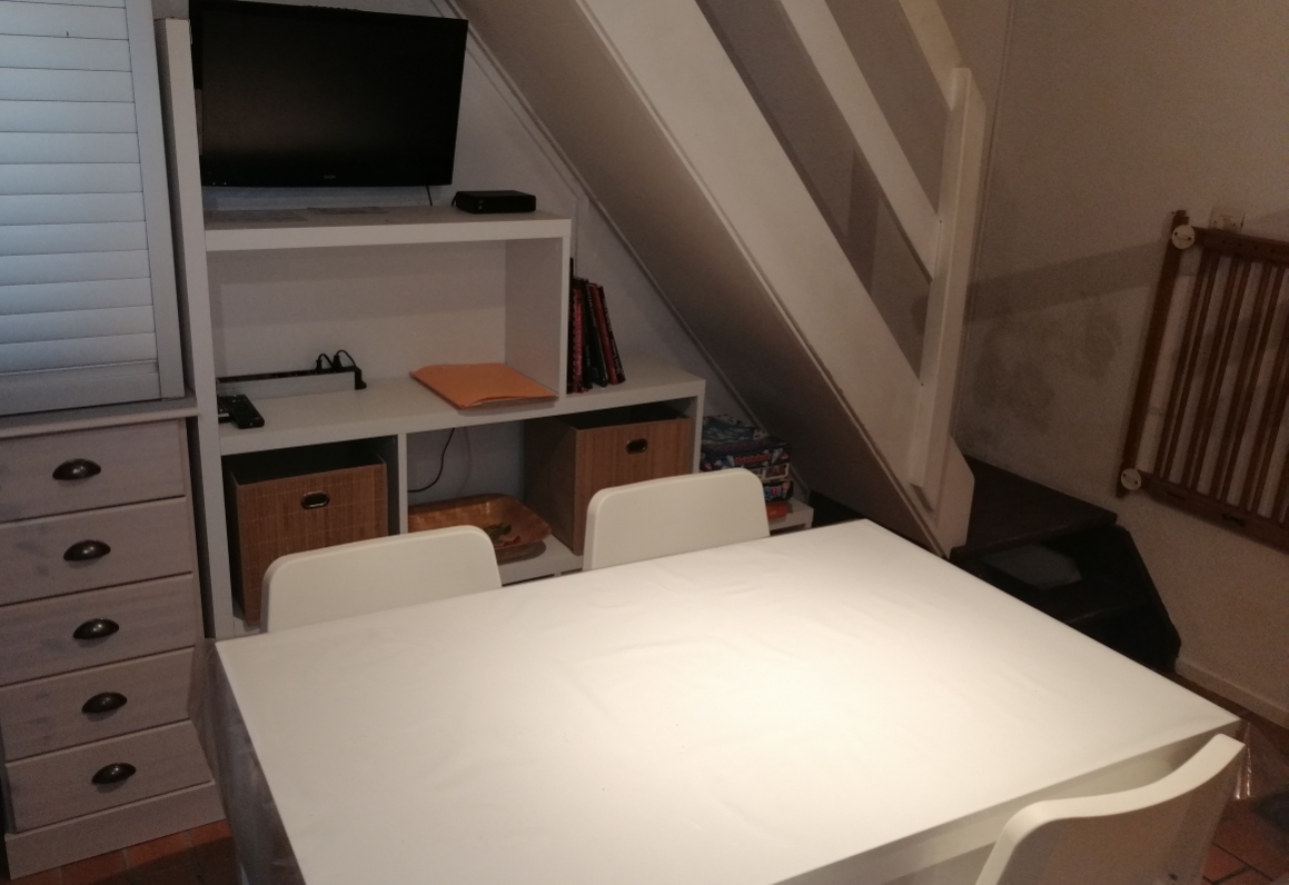 Au RDC: Une pièce principale avec coin salon (BZ transformable en lit 140,TV écran plat, quelques livres et DVD…)